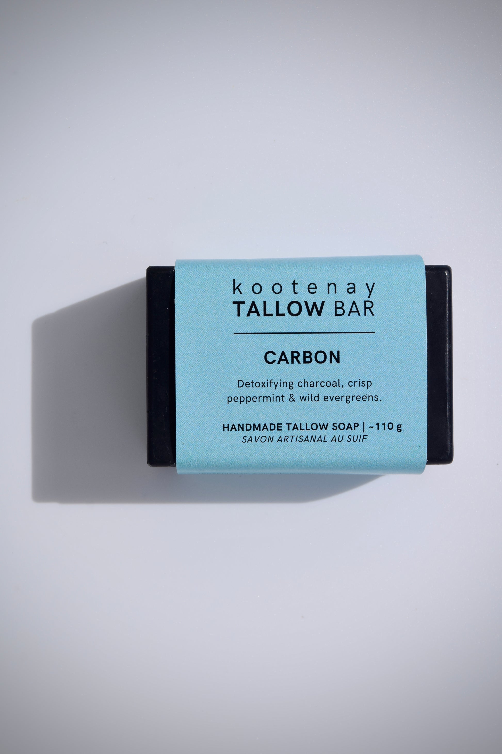 A deep-cleaning bar with a cool, invigorating feel. Activated coconut charcoal gives Carbon its striking black color and helps draw out impurities - making it especially helpful for oily or troubled skin. Crafted with nourishing local tallow and wild plant allies from the Kootenays, Carbon is bold, clarifying, and naturally effective.